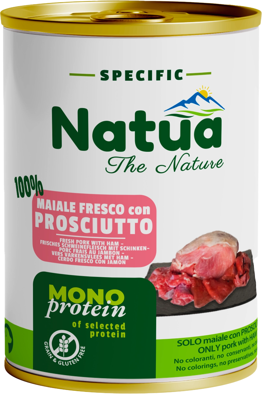 Porc frais (dont 4% jambon frais brut de cuisse de porc) 70% – Bouillon de porc 28,9% – Substances minérales 1% – Huile de lin 0,1%