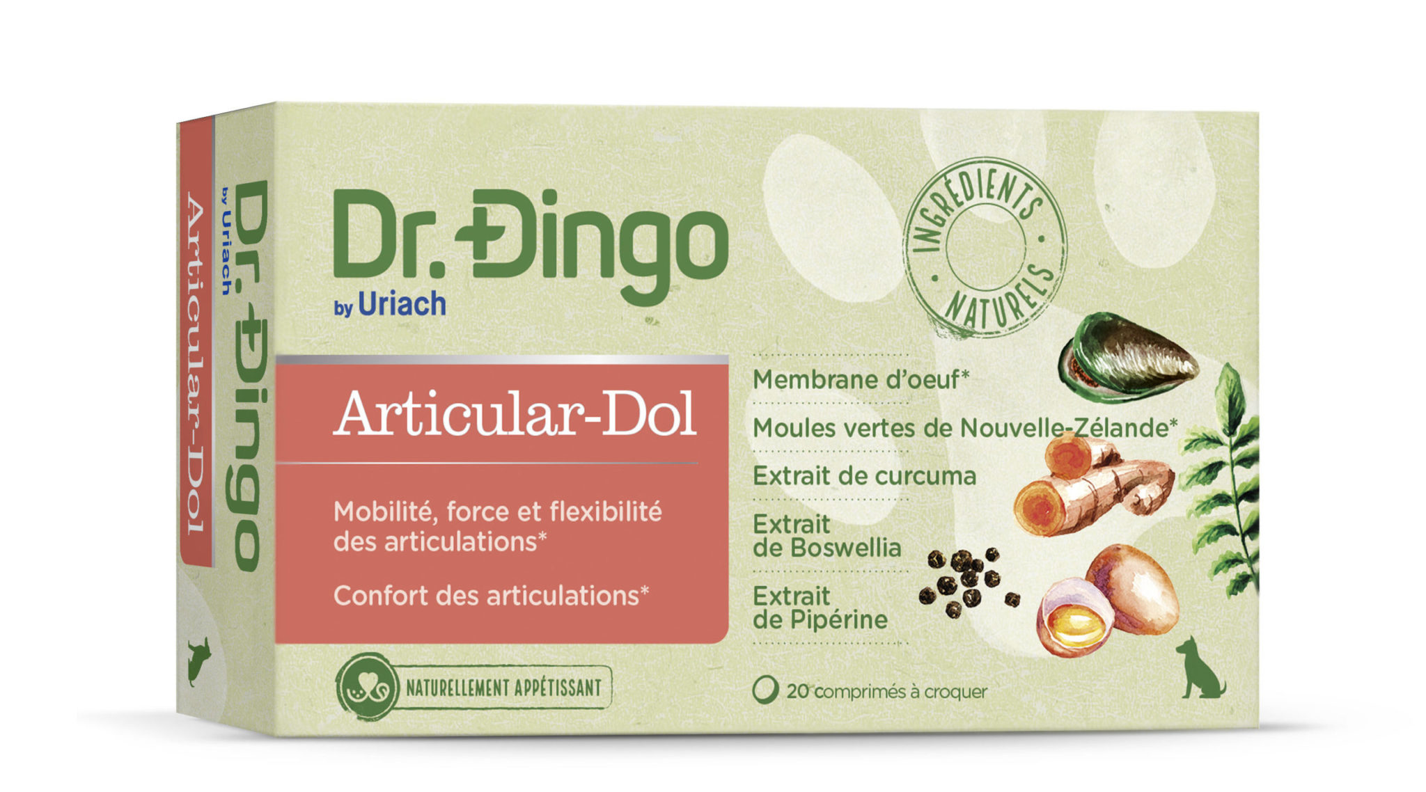 Complément naturel pour chiens sous forme de comprimés à croquer à base d'ingrédients naturels qui contribuent à la flexibilité, la mobilité et le renforcement des articulations.Ingrédients: